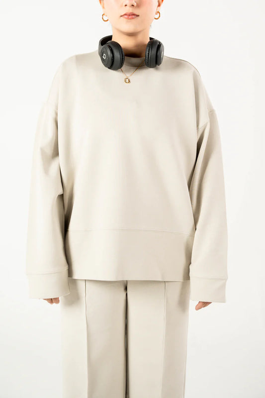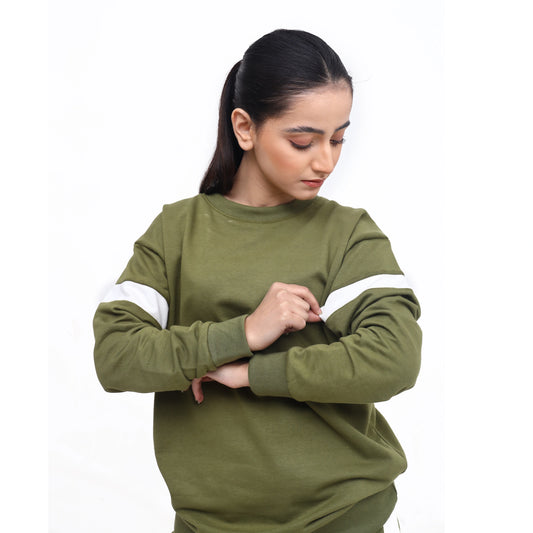 Drop Shoulder Sweatshirt and Flared Trouser Set - Olive Taupe