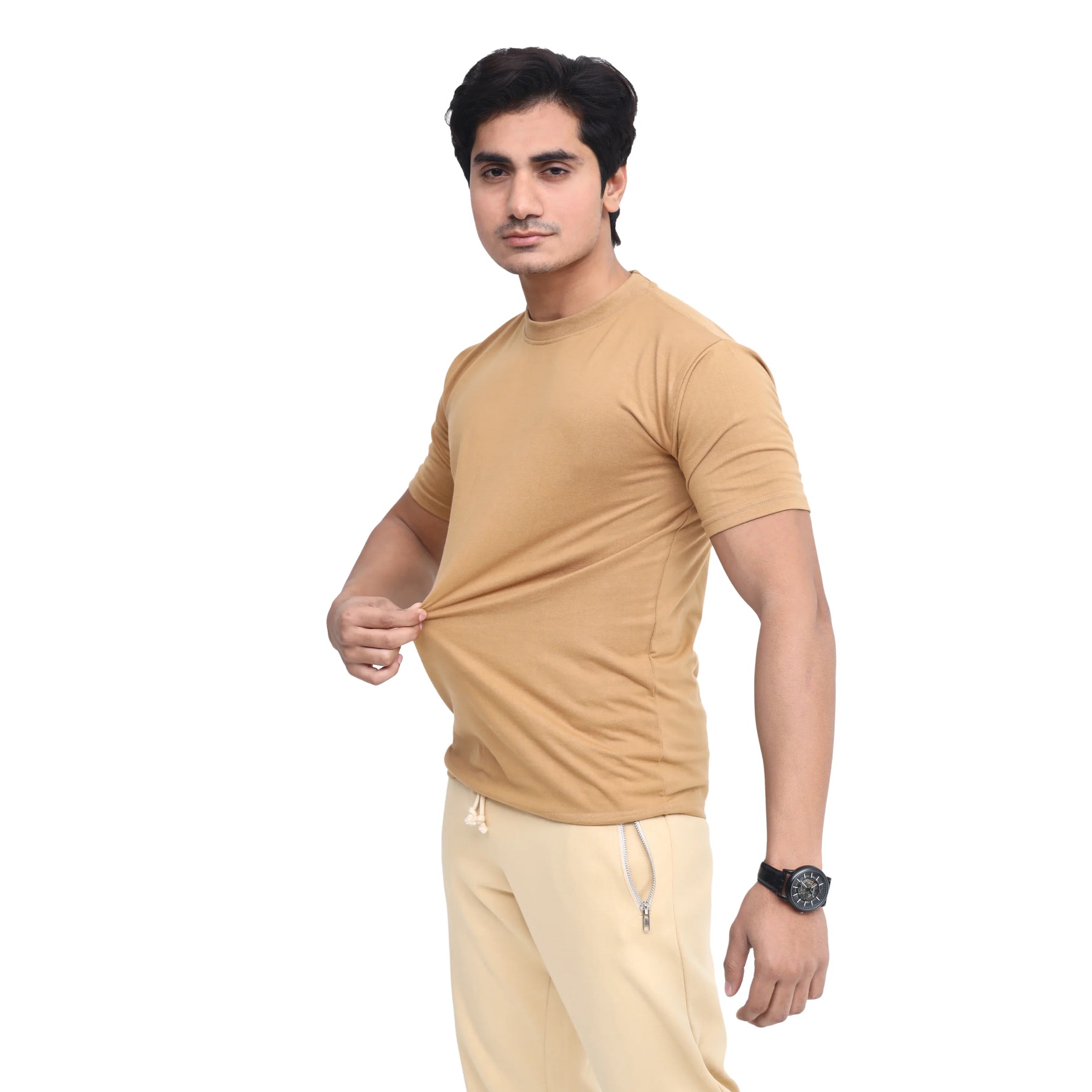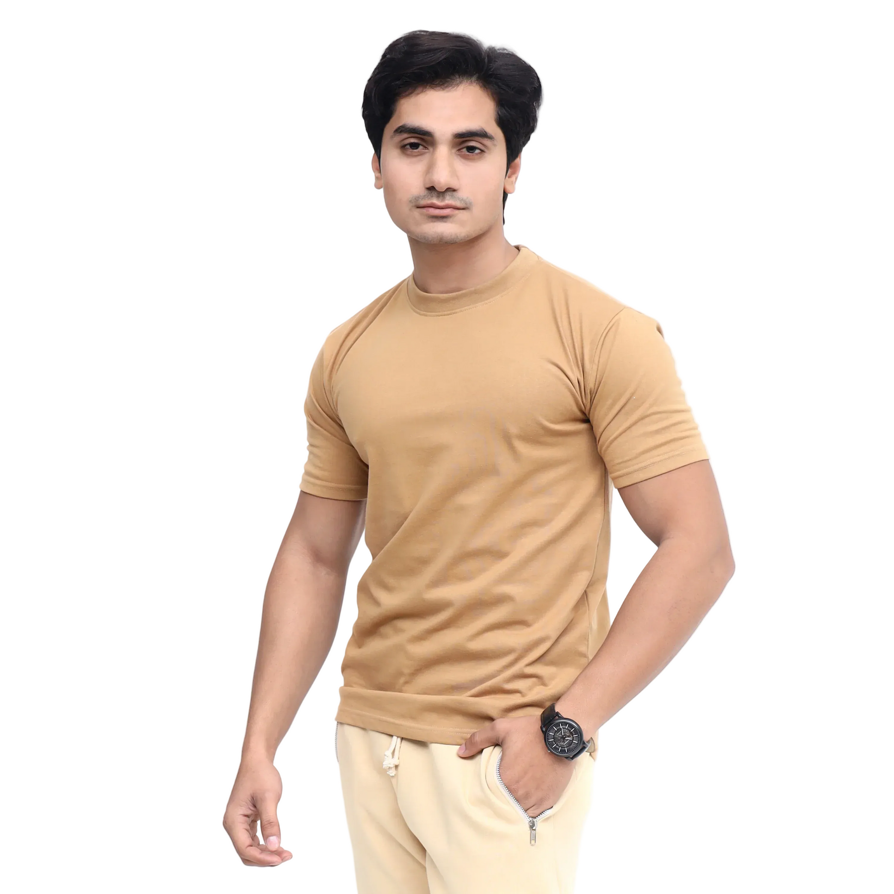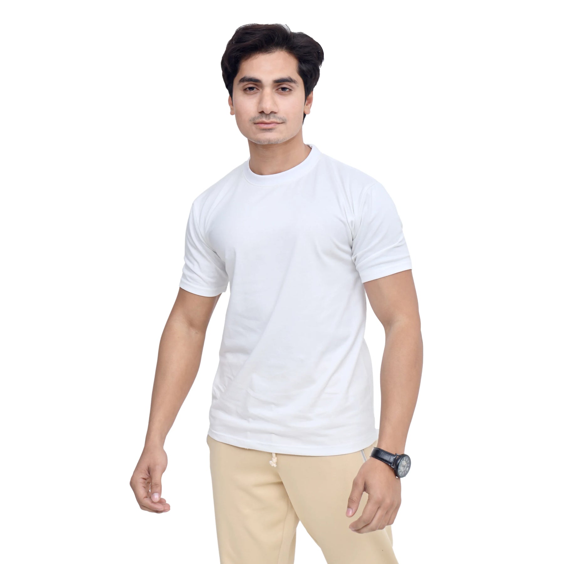 Discover the perfect blend of comfort and simplicity with our Plain Round Neck Men's Cotton Blended Half-Sleeve T-Shirt. This everyday essential offers: