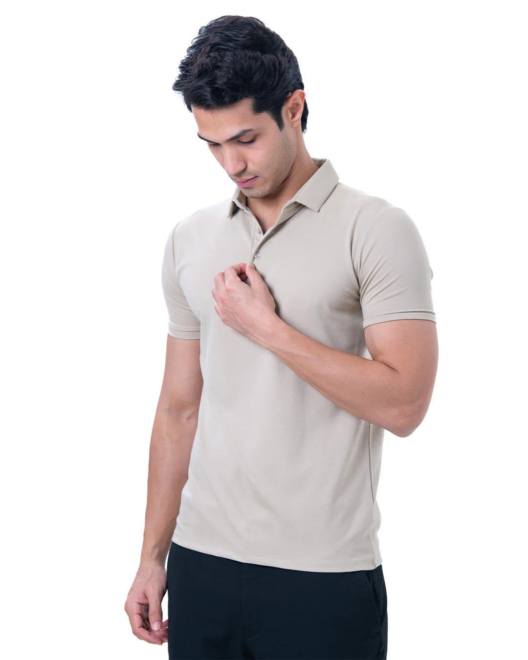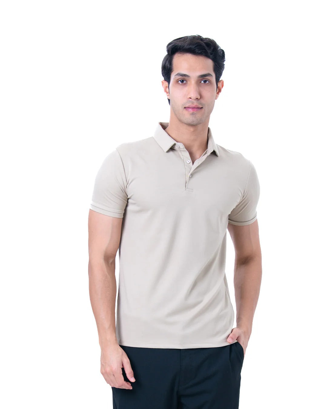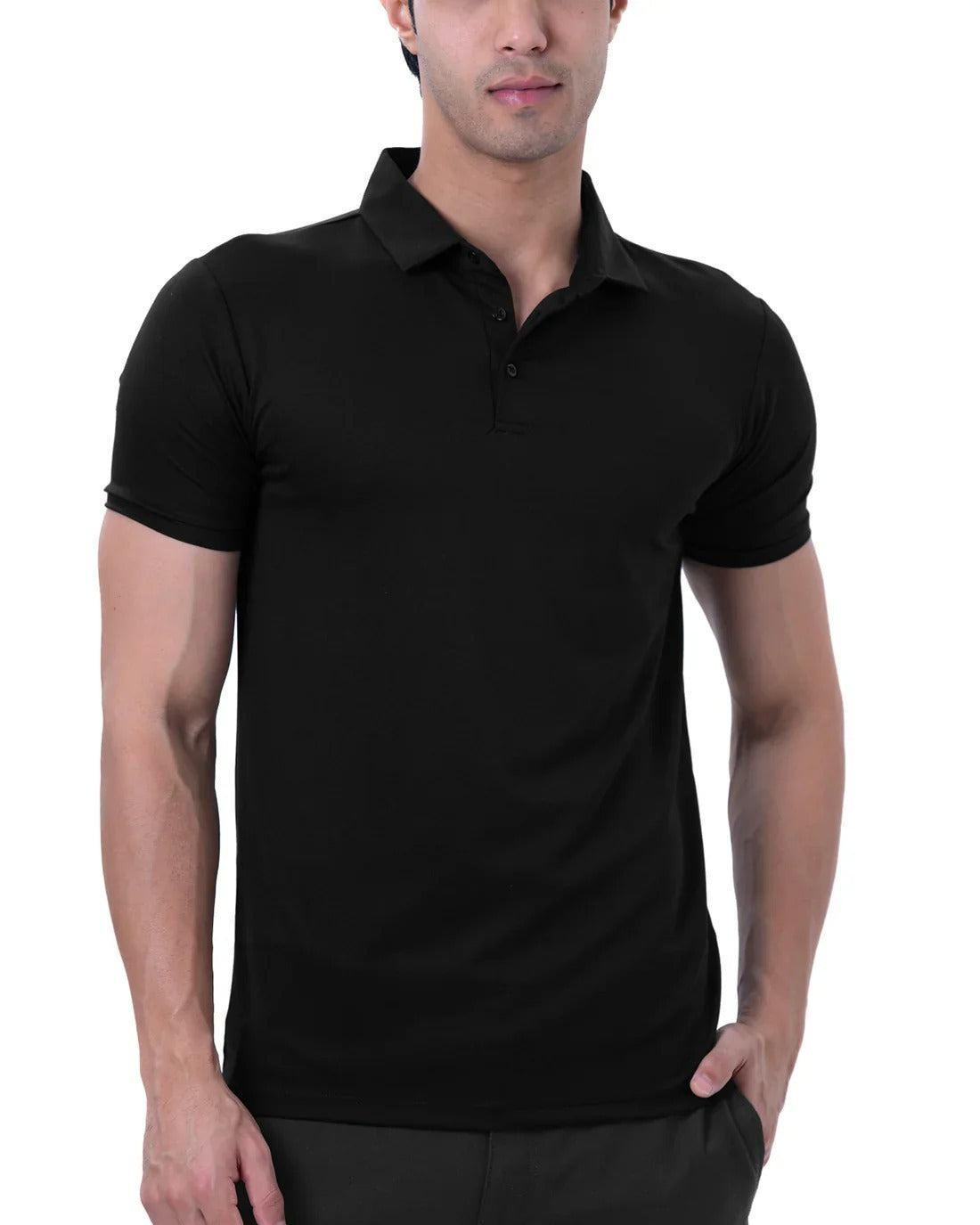 - Model Is Wearing Size M - He Is 6 Feet Tall, Chest Measures 38 inches And Weighs 75 Kgs - Composition : 65% Viscose , 30% Polyamide and 5% Spandex - Tailored Slim fit : Slim at Biceps and Shoulders , relaxed from torso and waist. - Perfect Bestselling polo which is gold finished for ultimate feel. - Shirt Style collars for that sharp look throughout the day - Muted and basic Colours which gives a professional and classy look. - Self fabric Rib on the Arms and clean button placket for the Sharp look.
