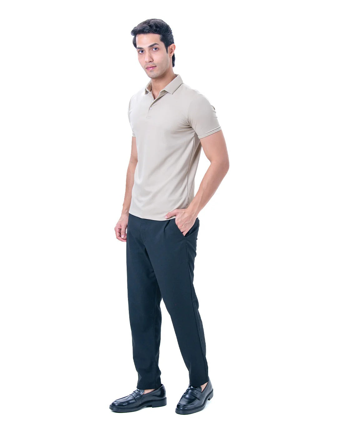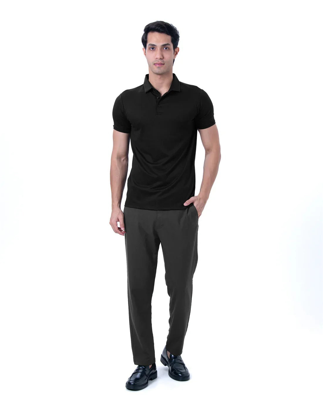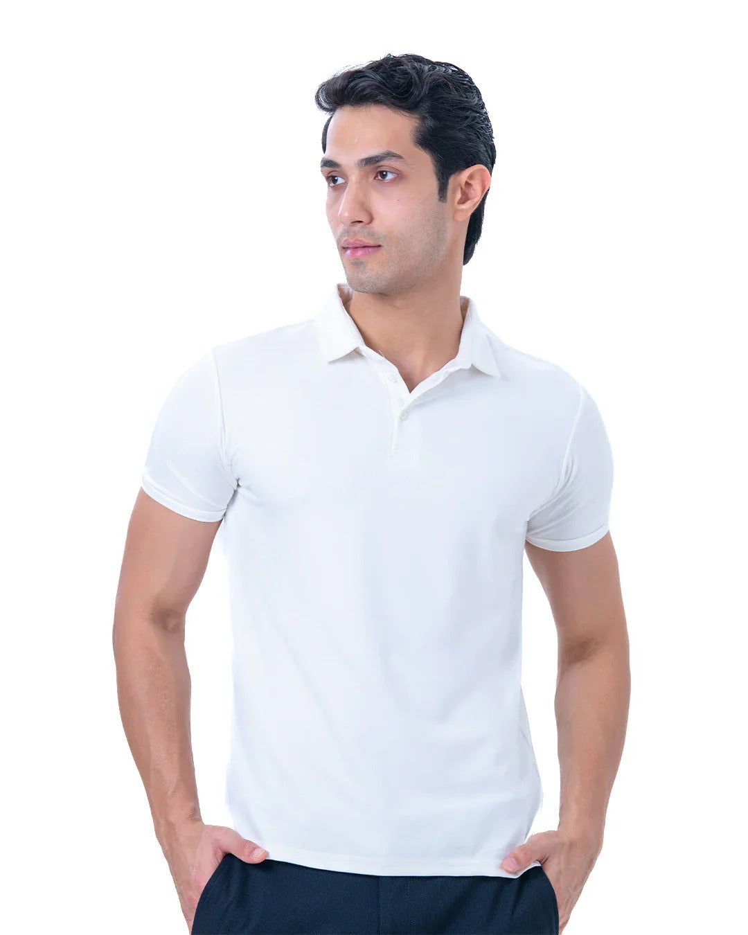 - Model Is Wearing Size M - He Is 6 Feet Tall, Chest Measures 38 inches And Weighs 75 Kgs - Composition : 65% Viscose , 30% Polyamide and 5% Spandex - Tailored Slim fit : Slim at Biceps and Shoulders , relaxed from torso and waist. - Perfect Bestselling polo which is gold finished for ultimate feel. - Shirt Style collars for that sharp look throughout the day - Muted and basic Colours which gives a professional and classy look. - Self fabric Rib on the Arms and clean button placket for the Sharp look.